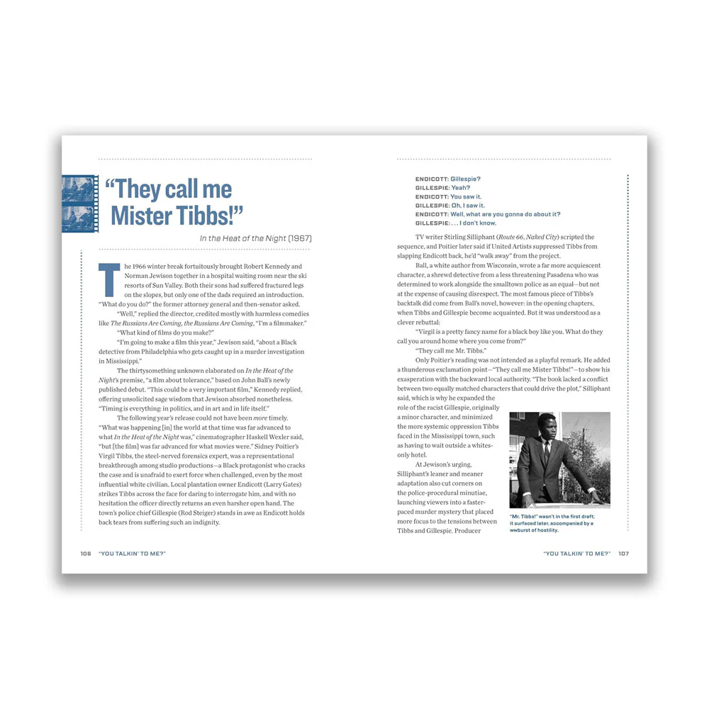"You Talkin' to Me?": The Definitive Guide to Iconic Movie Quotes by Brian Abrams (Author) – September 26, 2023 This deep dive into hundreds of Hollywood’s most iconic and beloved lines is a must-have for every film buff. "You Talkin’ to Me?" is a fun, fascinating, and exhaustively reported look at all the iconic Hollywood movie quotes we know and love, from Casablanca to Dirty Harry and The Godfather to Mean Girls. Drawing on interviews, archival sleuthing, and behind-the-scenes details, the book examines the origins and deeper meanings of hundreds of film lines: how they’ve impacted, shaped, and reverberated through the culture, defined eras in Hollywood, and become cemented in the modern lexicon. Packed with film stills, sidebars, lists, and other fun detours throughout movie history, the book covers all genres and a diverse range of directors, writers, and audiences.